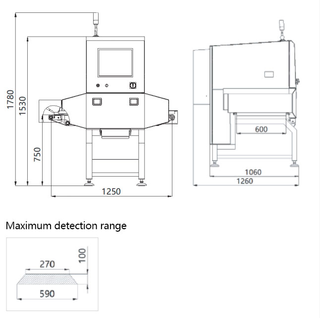 Remarks: The foreign body size of the detectable object is related to the material composition, packaging material, thickness and other parameters in the product. In the actual production environment, please refer to the actual product test results.